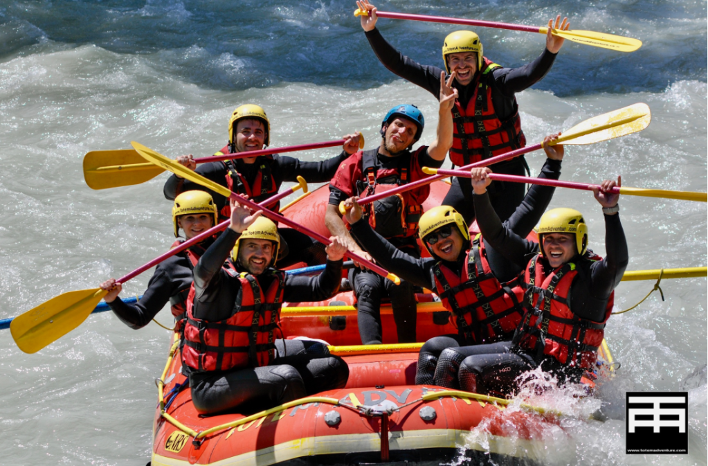 The raft now in the strong current, we carefully took our positions one by one as Mark used rope to keep it in place. Ben and I got in last, volunteering to take the back while the other 4 (Matt, Cameron, Chris, and Melissa) took the front. Mark took his position in the middle with his master oars at the ready – we were one carabiner away from being swept into the 4.5 rated rapids (out of 5). Before launching, Mark slapped both his hands twice on the water, as if to challenge it, then washed his face aggressively yelling “Ready!” This reminded Ben and I of the iconic movie Gladiator where Maximus rubs his hands in the dirt before each of his battles – we were entertained.