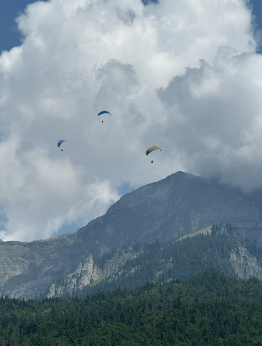 Over the course of our days in Saint Gervais we played ping-pong, journaled, ate lots of gelato, played chess, and even took up paragliding – something none of us had ever done. It was one more adrenaline rush to cap off our time in France. I’d never even been sky diving before, so the thought of floating thousands of feet up in the air for 20-25 minutes was exhilarating, but frightening. When we arrived at the open field where the paragliders were landing, we noticed several children practicing their landing techniques. I’m not sure my mom would’ve ever let me take up paragliding as a childhood hobby, but it was fun watching these kids practice something they enjoyed doing. After some time, our guides pulled up in vans ready to take us to the top of the cliffs where we’d be taking off, and after a few short instructions on how to sit back and do nothing, we were suddenly running off the edge of a cliff with our lives hanging by nylon threads. Paragliding through the French Alps wasn’t something I thought I’d be doing on this trip, but it was one of the greatest experiences I had there.
