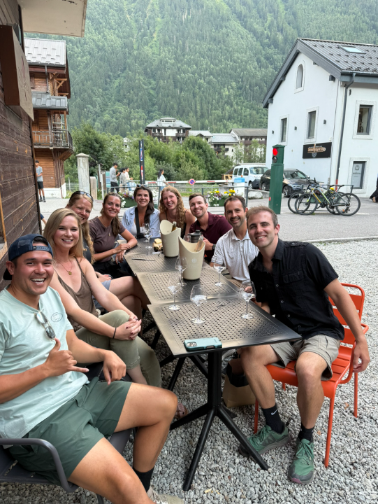 We had an extra long lunch at the top of the pass, where there was fresh food and drinks. From there we could see Chamonix, the city we’d all met and where this trek had started. After taking in the sights, we began our descent to the train station in Vallorcine, where we waited for the train to take us back to Chamonix. From there we had one last celebratory moment as a group, where Jean-Pierre gave us our Mont Blanc certificates and wished us farewell.